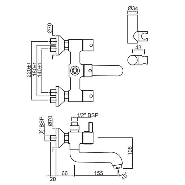 Bath & Shower Mixer with Connector for Hand Shower