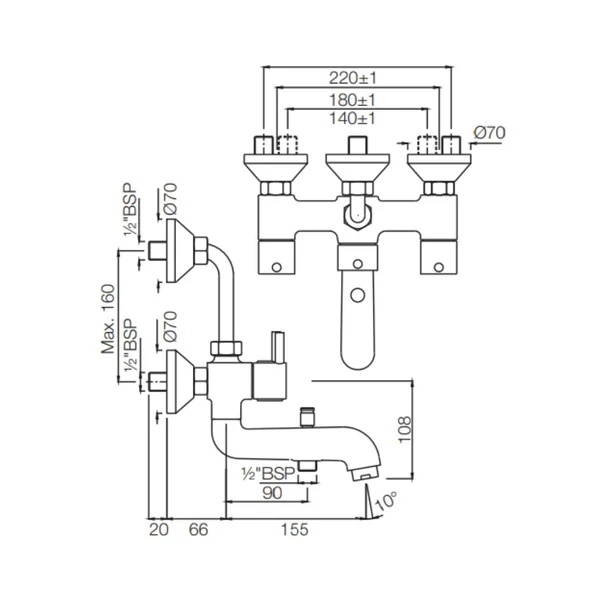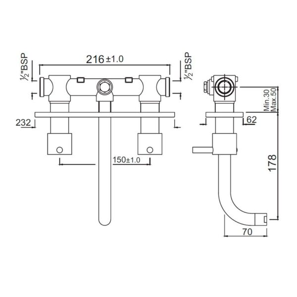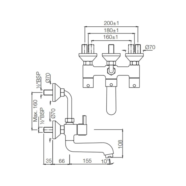 3 Hole Basin Mixer Wall Mounted