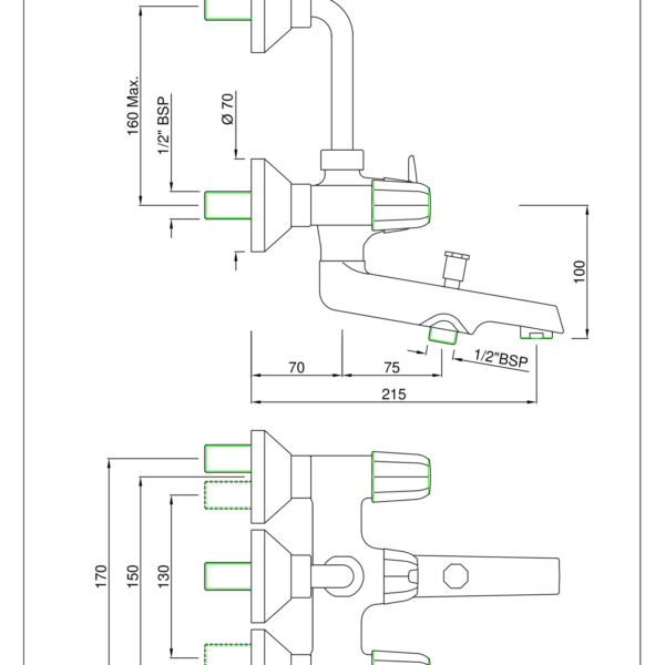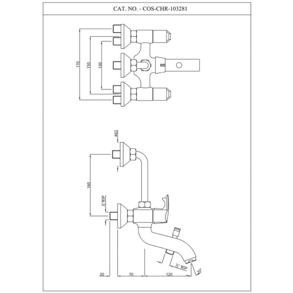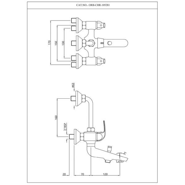 Wall Mixer Non-Telephonic Shower Arrangement – Chrome