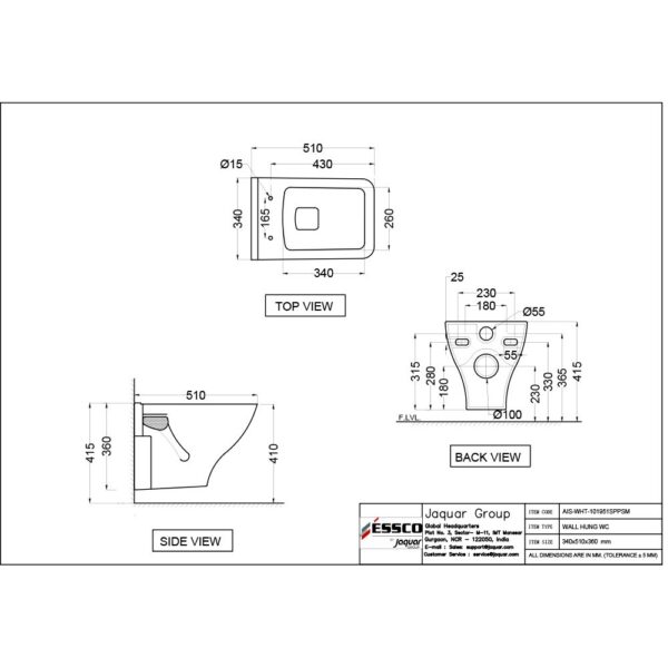 ESSCO ASPIRE WALL HUNG WC AIS-WHT-101951NPPSM