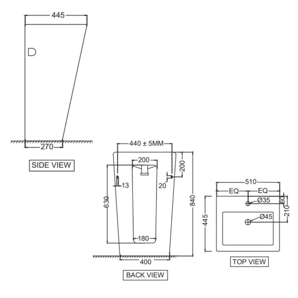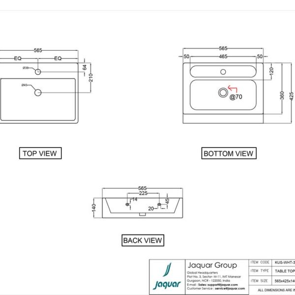 Jaquar Floor Standing Rectangle Shaped White Wash Basin Kubix KUS WHT 35401