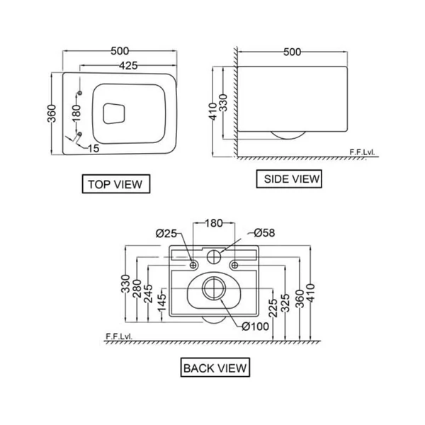 Jaquar Wall Mounted Black Matt Closet WC Kubix KUS-BLM-35953BIUFSM with P-Trap