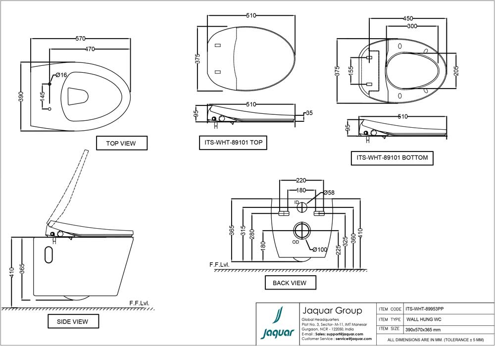 Jaquar Floor Standing Rectangle Shaped White Wash Basin Kubix KUS WHT 35401