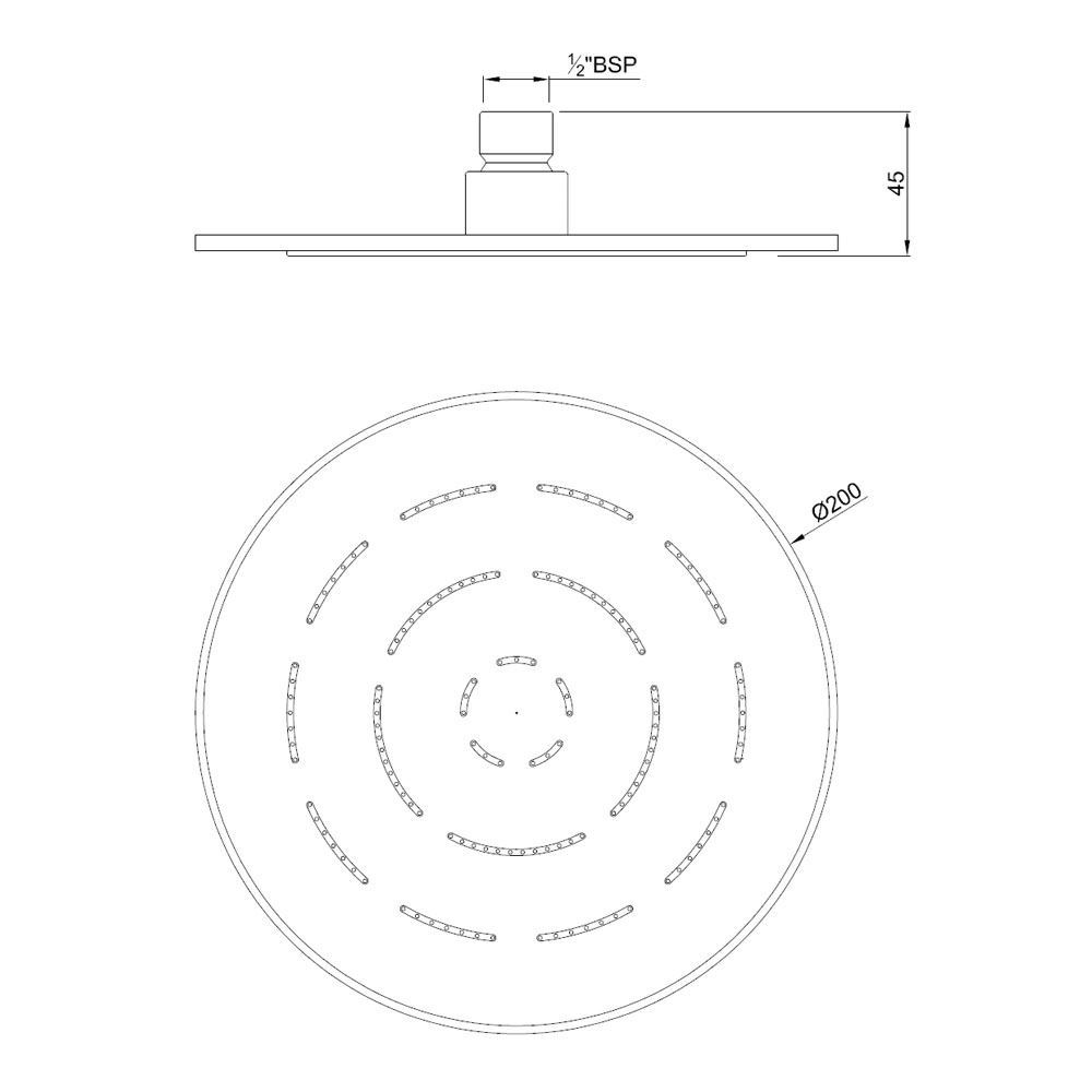 Maze Overhead Shower 200mm Round Shape Single Flow (Body & Face Plate Stainless Steel) with Rubit Cleaning System