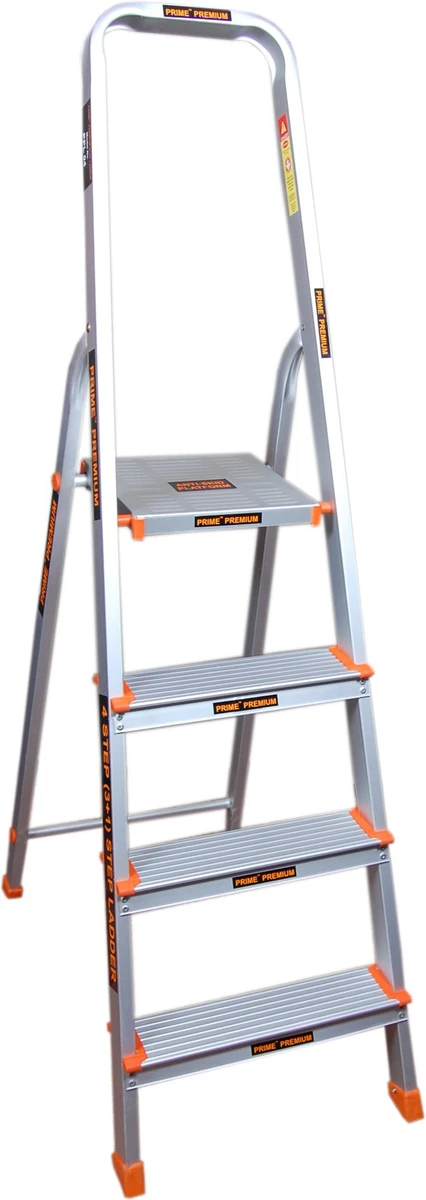 Prime Premium Step Aluminium Ladder: durable, lightweight, anti-skid, and foldable with extra-strong platform and safety features.