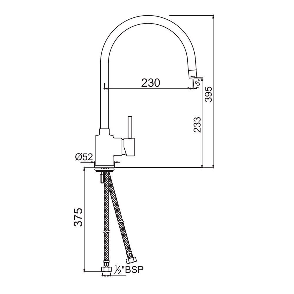 Side Single Lever Mono Sink Mixer with Swivel Spout & 375mm Long Braided Hoses