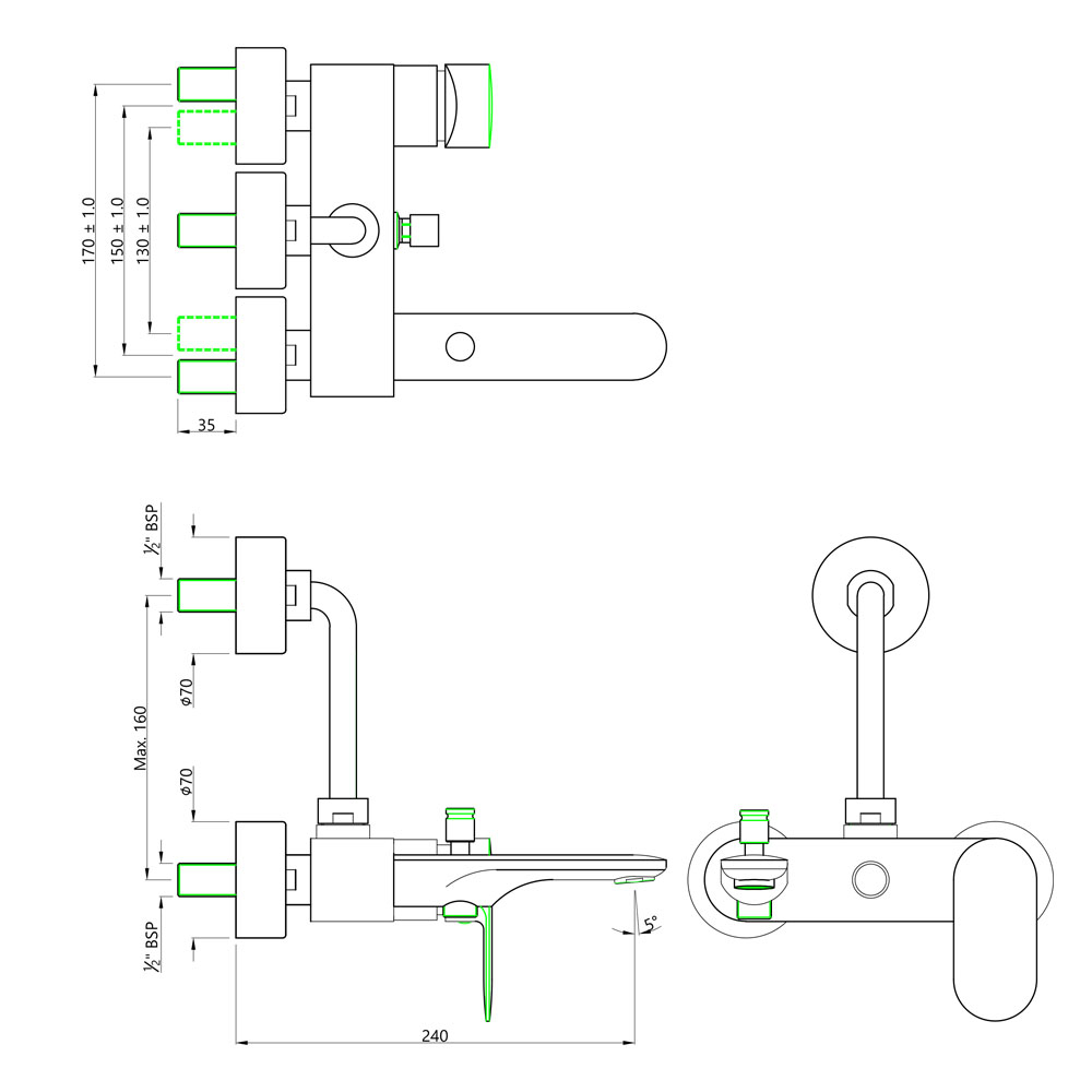 Single Lever Wall Mixer 3-in-1 System – Chrome