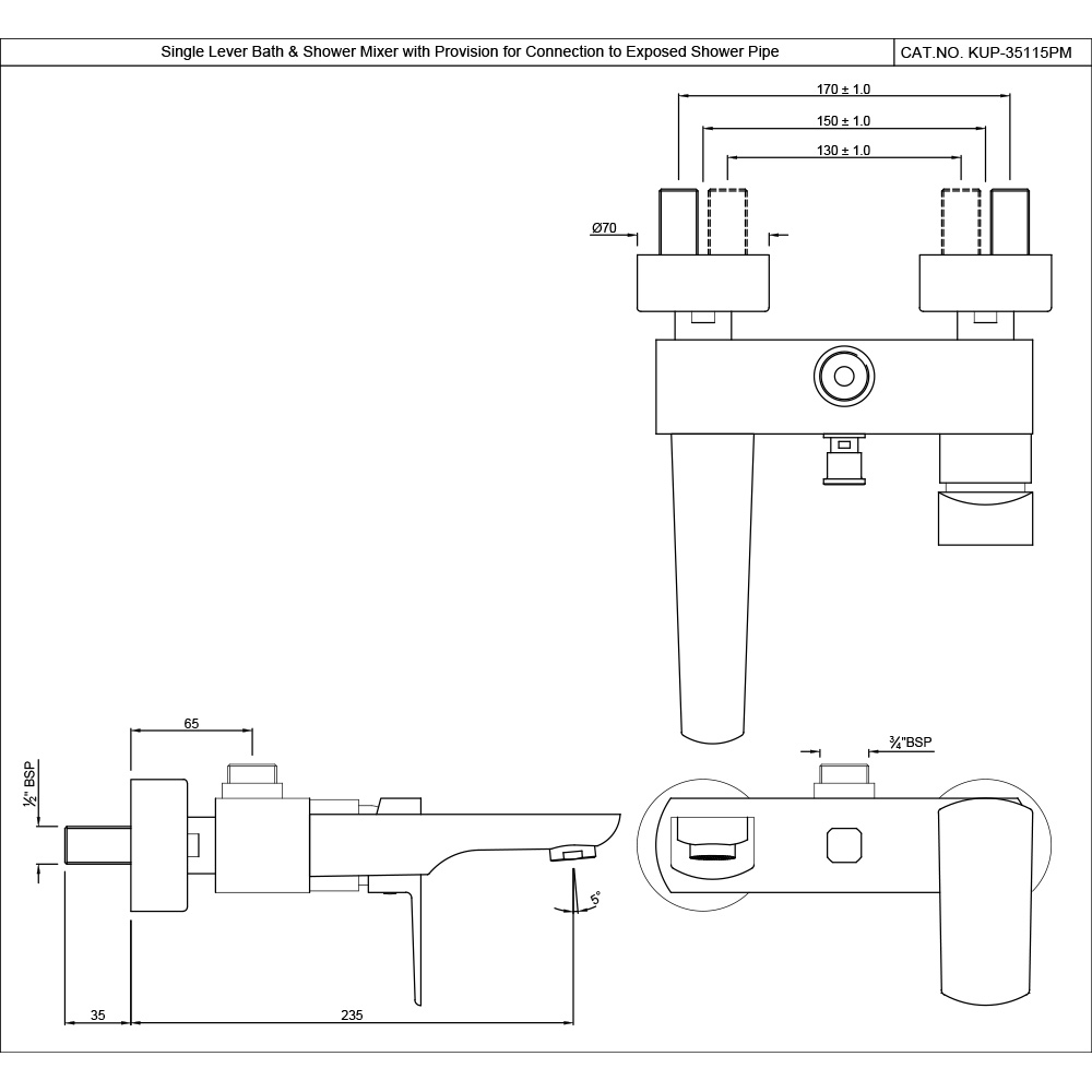 Single Lever Wall Mixer with Provision for Connection to Exposed Shower Pipe (SHA-1211N) with Connecting Legs & Wall Flanges