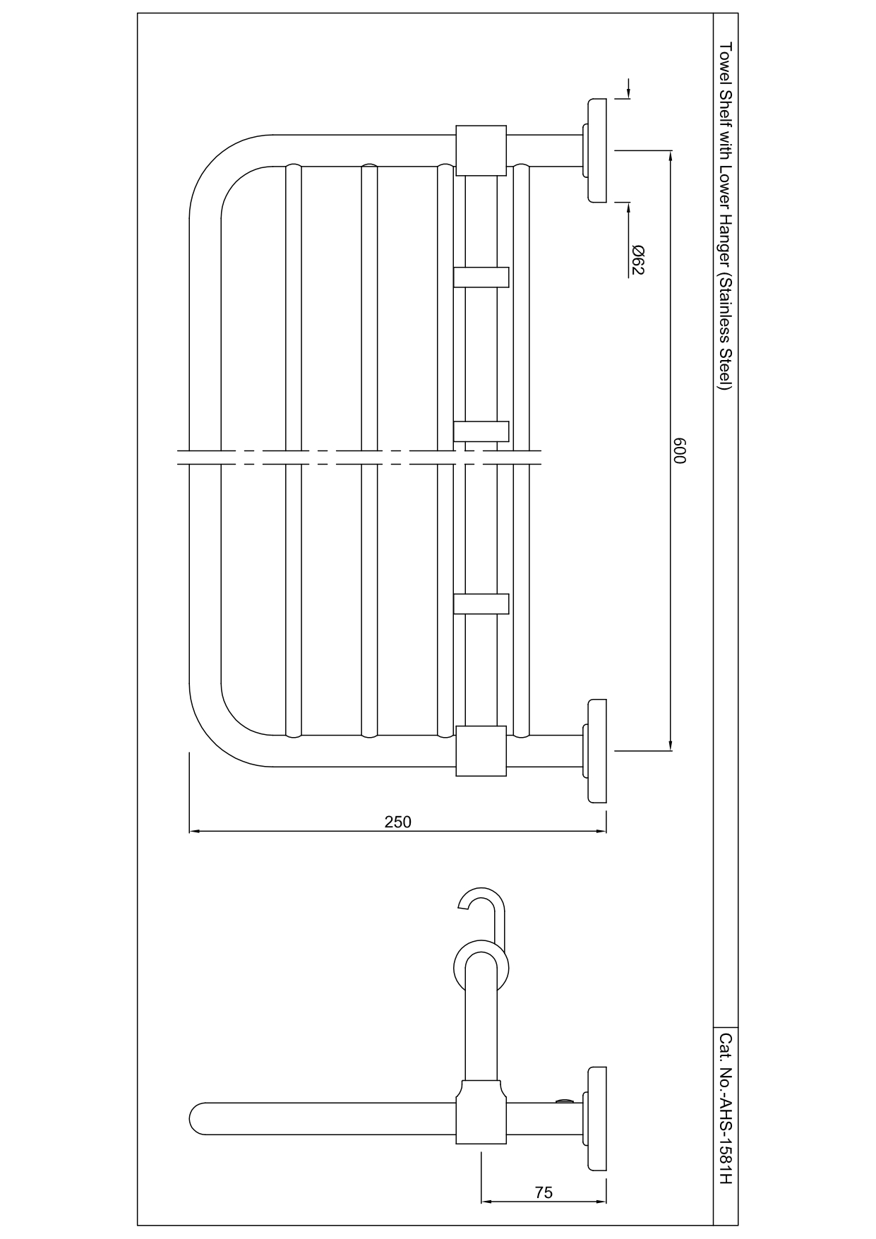 Towel Shelf with Lower Hanger (Stainless Steel) with Hooks