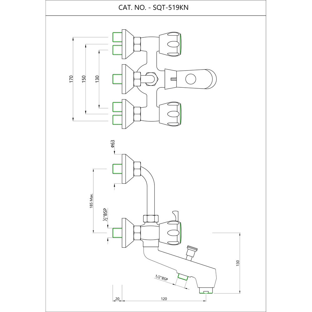Wall Mixer 3-in-1 System with 115 mm Bend Pipe and Aerator